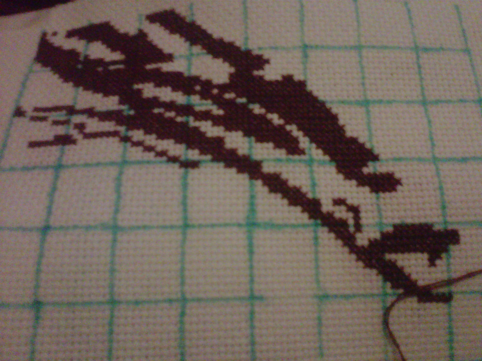So I've started an HAED, which is a ridiculously huge and intense cross stitching project. It has a little over 200,000 stitches in it!! So I will show my progress of it here... I have to buy new fabric after starting it already, which sucks...there was a problem with the way it was cut when I bought it. I have this so far, though